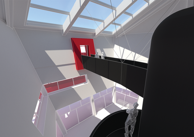 The scheme also reinterprets the role of the plaza as a community anchor. External staircases wind around the building, linking interior programmes with public outdoor spaces and encouraging interaction between visitors and activities within. This spatial connectivity stimulates curiosity, strengthens community engagement, and reinforces the project’s role as both an educational facility and a civic landmark.